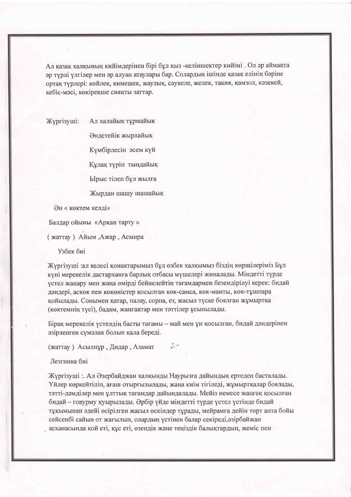 БАЛАЛАРДЫҢ АС МӘЗІРІ